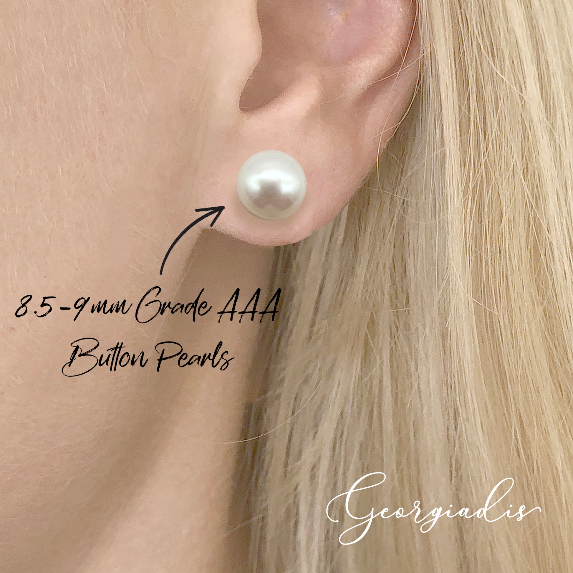 💎 STUNNING GENUINE PEARL STUD EARRINGS 💎 - The pristine white pearls, radiate a captivating luminosity that instantly captures the eye. A generous 8.5-9mm in size, these stunning button-shaped earrings, are a classic accessory that transcends fashion trends and can be worn on any occasion. They are equally at home in both formal and casual settings, adding a touch of refinement to any outfit.