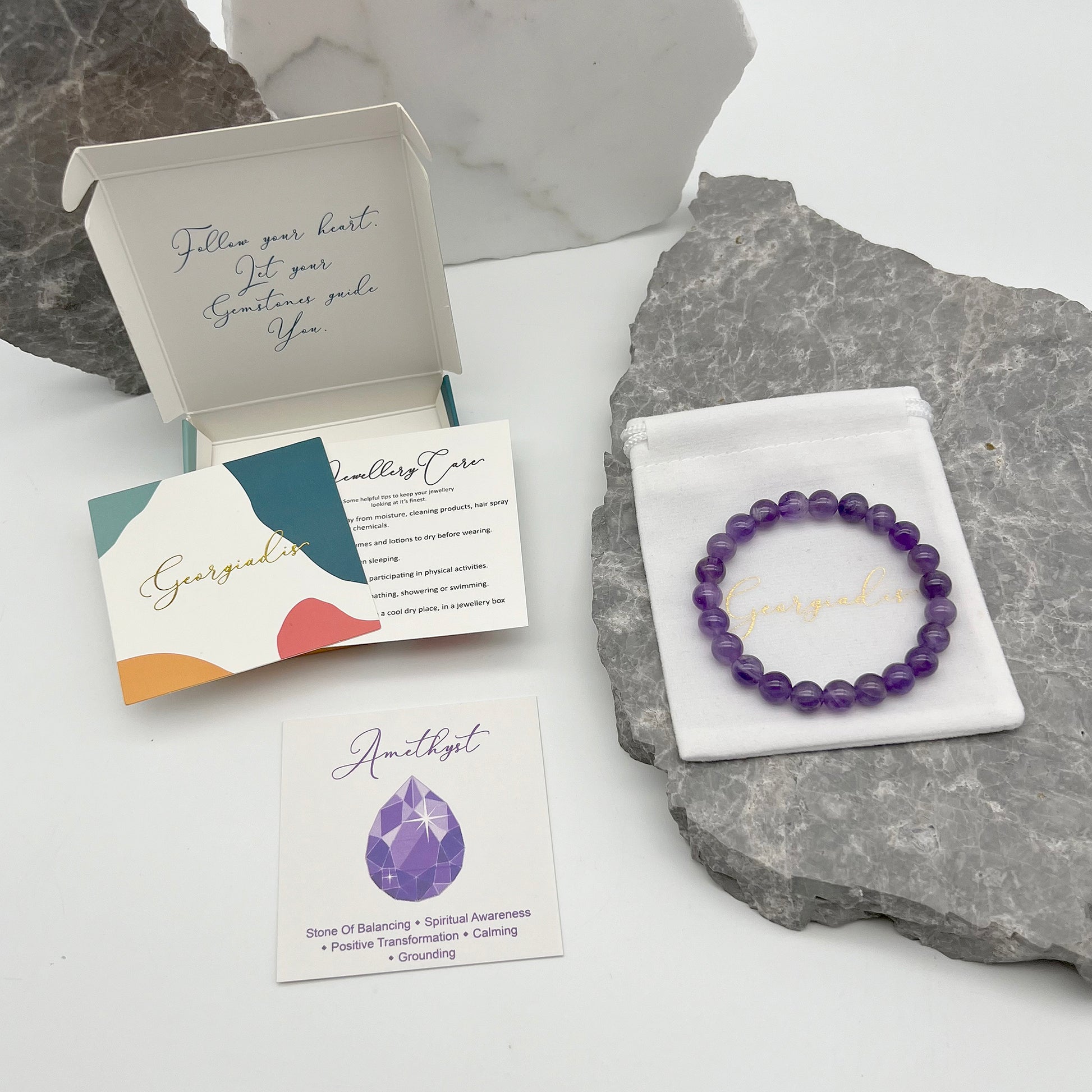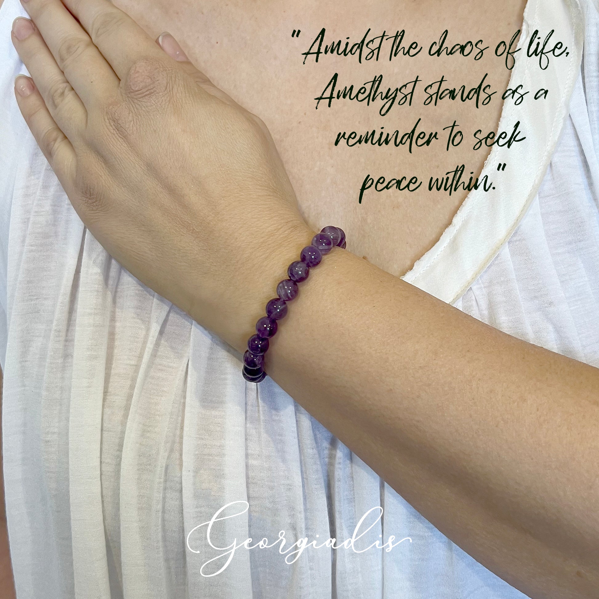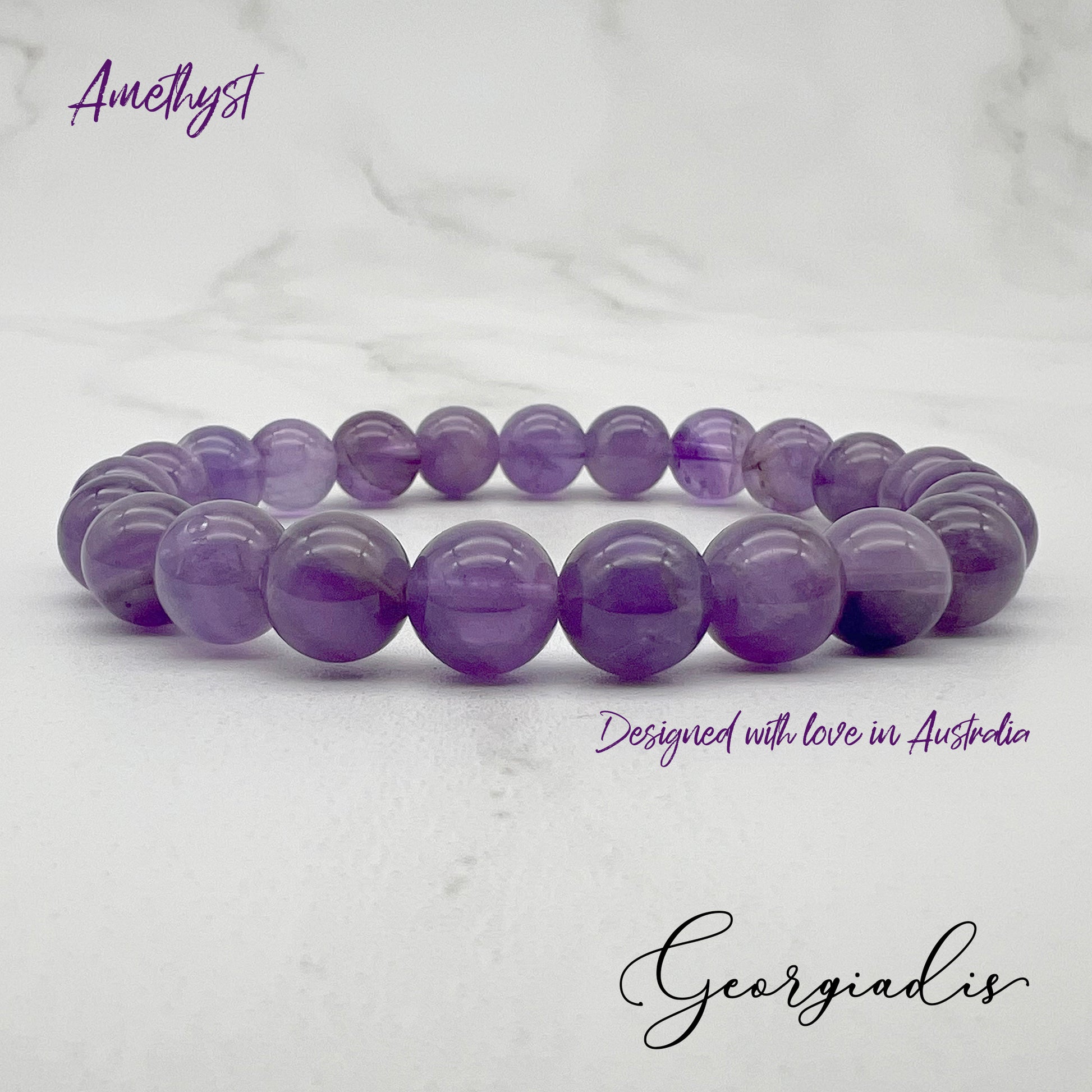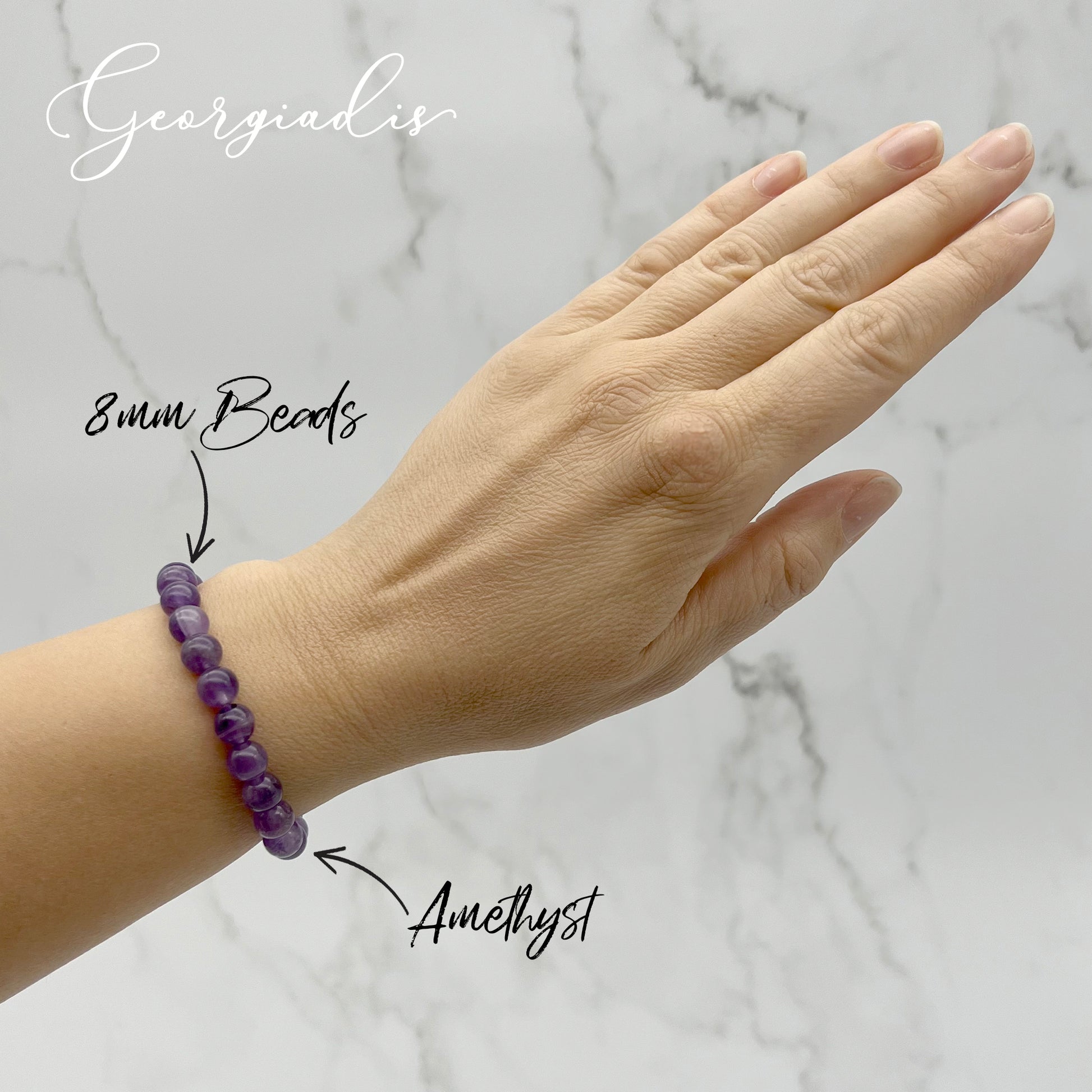 { Georgiadis } - Stunning 8mm Amethyst Gemstone Bracelet, Calming, Promotes Spiritual Awareness, Colour Therapy Purple, Birthstone February, Gift, Love, Bracelet for Women