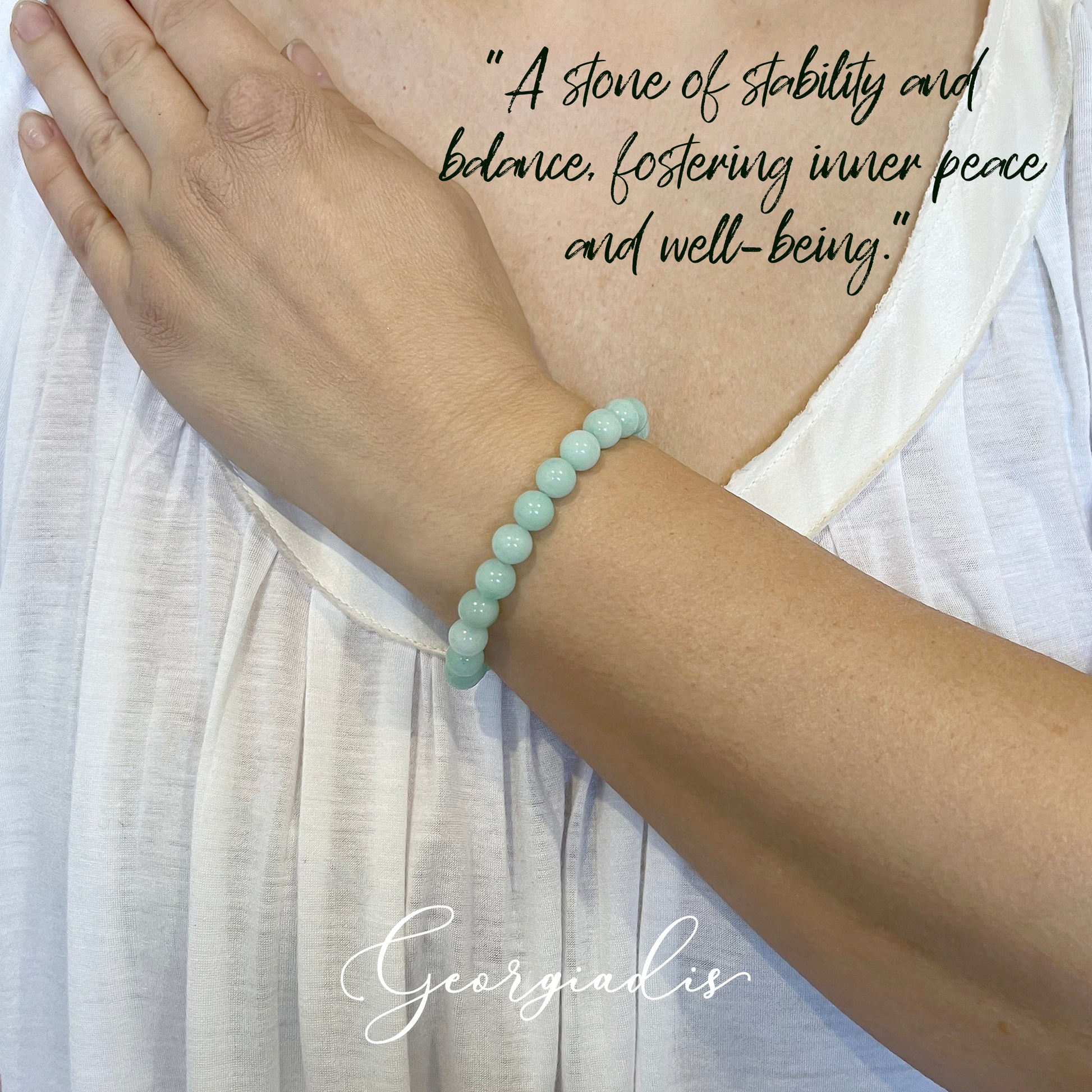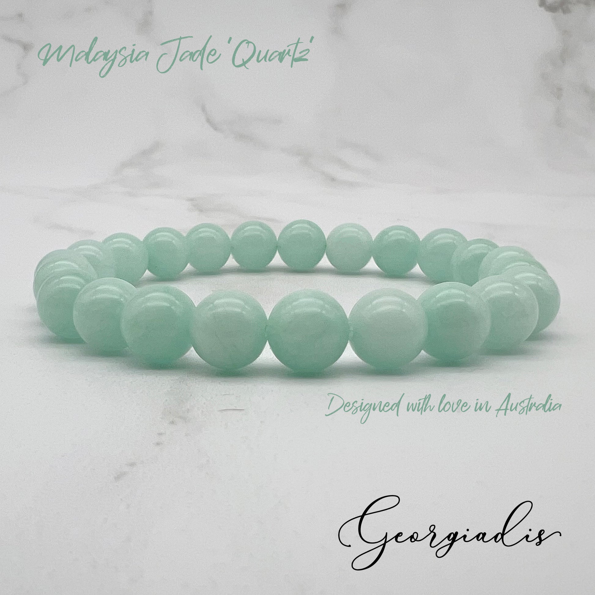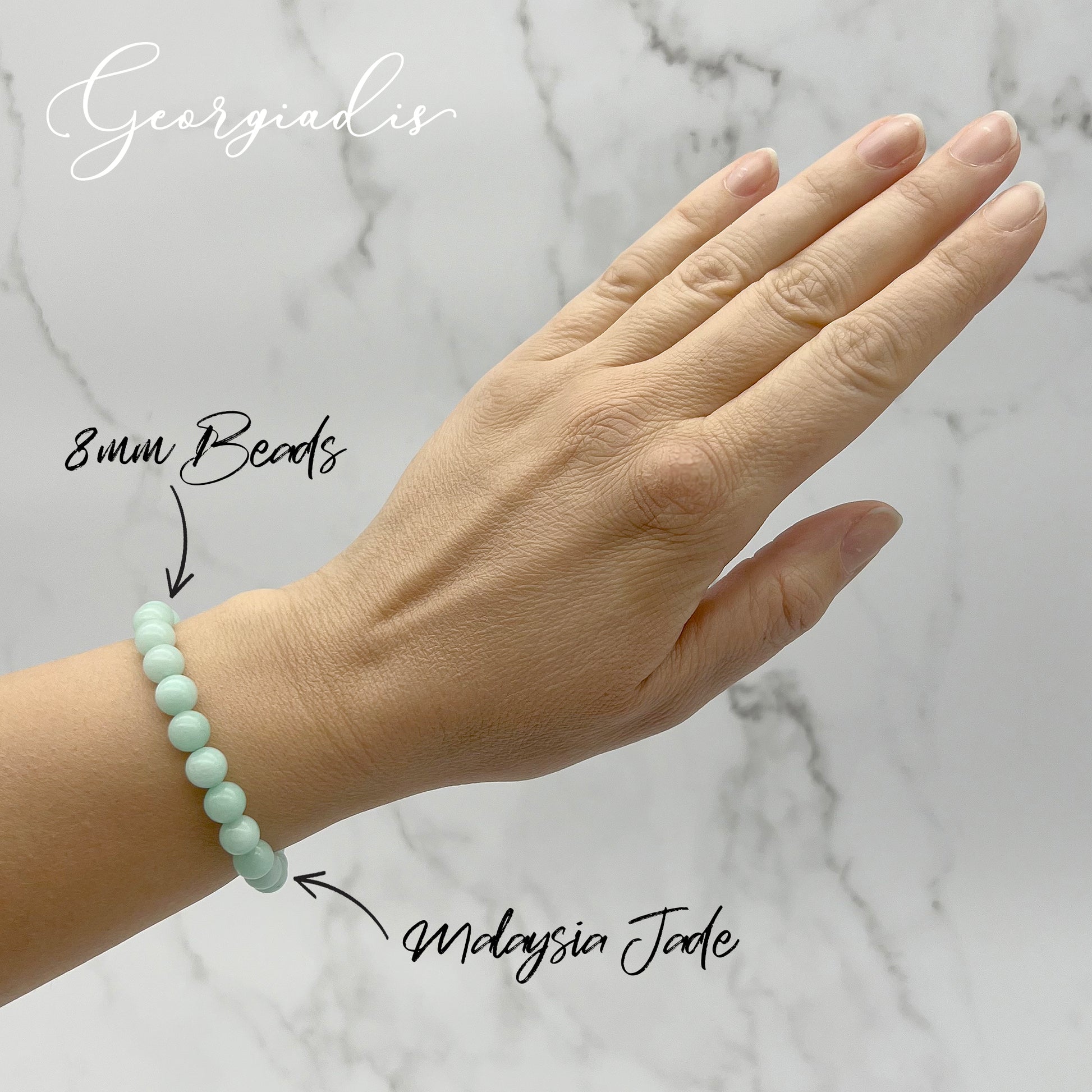 { Georgiadis } - Stunning 8mm Malaysia Jade Gemstone Bracelet, Peace, Wisdom and Balance, Aqua Colour, Heart Chakra, Gift, Love, Bracelet for Women