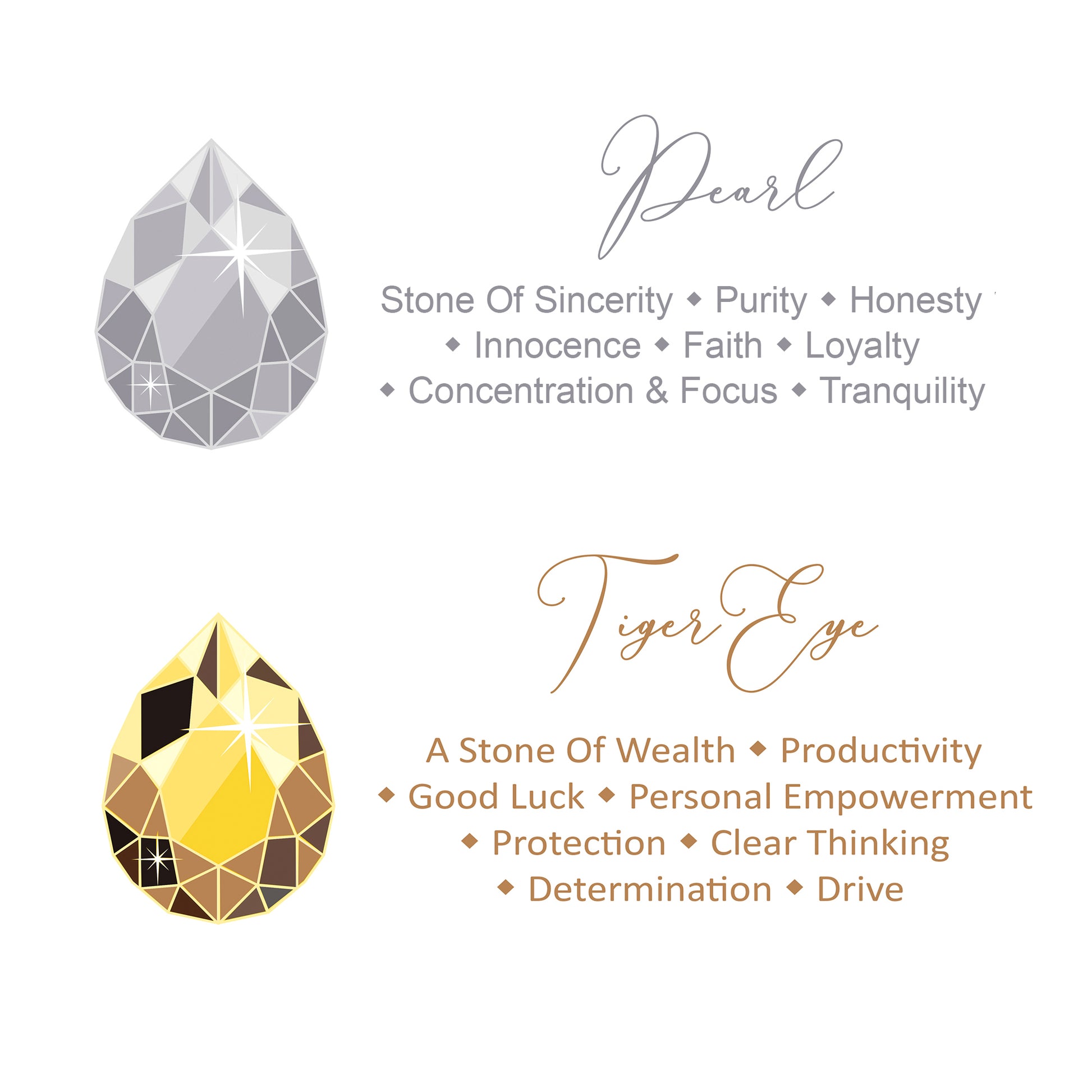 💎 JEWELRY INFO CARDs 💎 - Beautifully designed cards explain the many natural benefits of pearls and tiger eye along with tips for proper care of your bracelet. It will become a frequent inspiration for positive energy and a more meaningful life.
